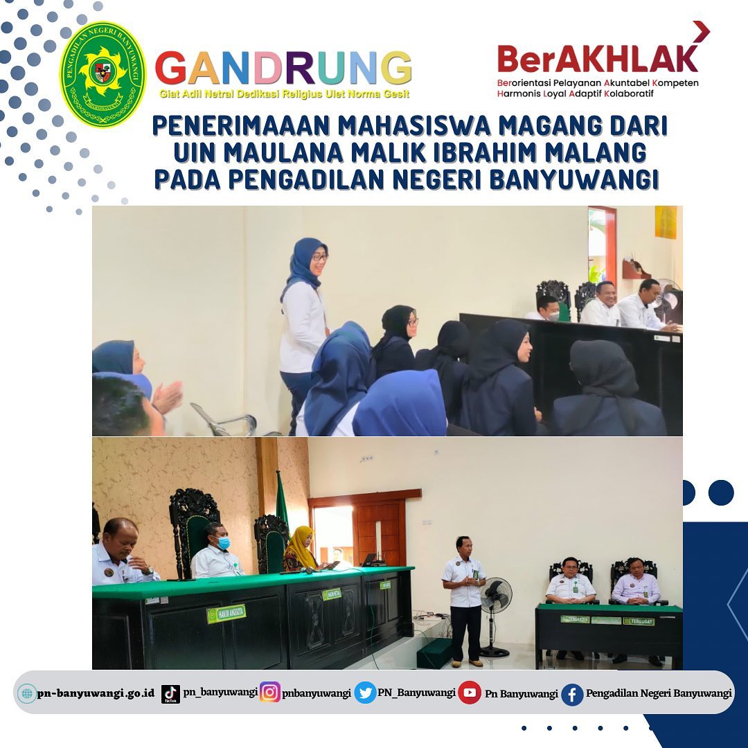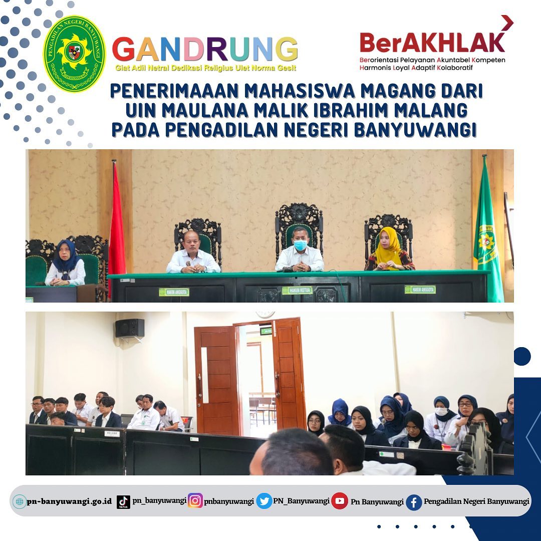 Pengadilan Negeri Banyuwangi menerima Mahasiswa Magang UIN Maulana Malik Ibrahim Malang dalam Pelaksanaan Program Studi Hukum Tata Negara